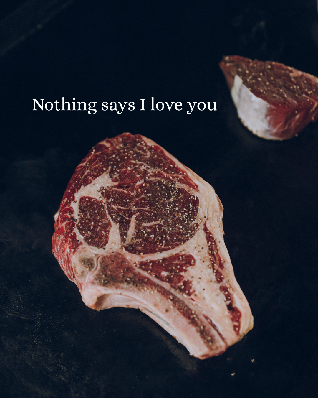 Hand selected from our most premium cuts, Rib Steaks or New York Strips — richly marbled, pasture-raised, one for her and one for him.